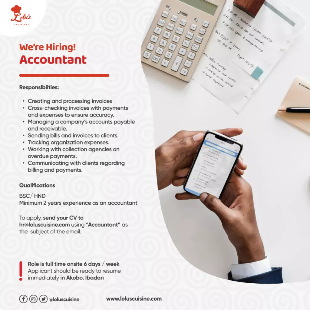 Send your CV hr@loluscuisine.com using ‘Accountant’ as the subject of the email.