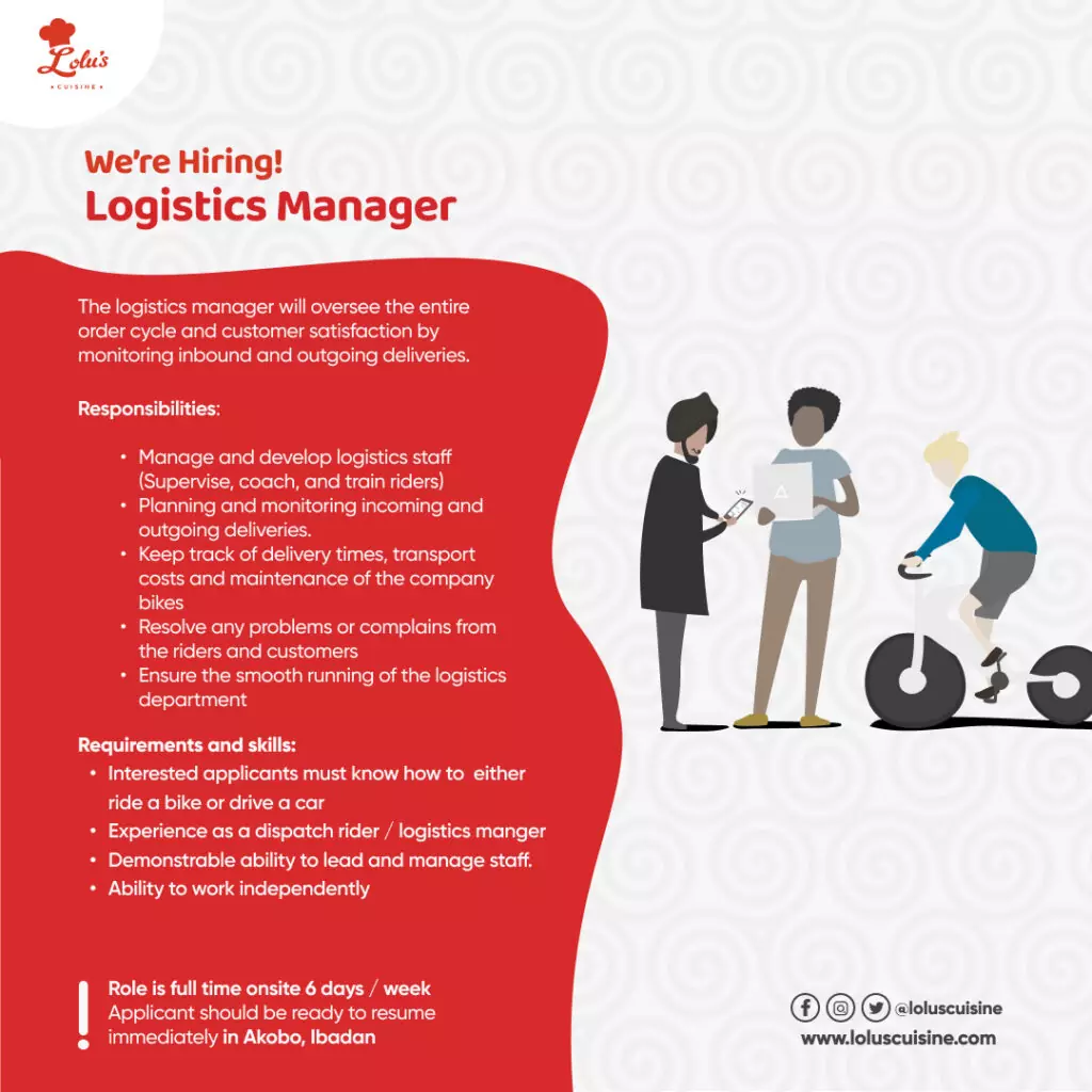 Send your CV hr@loluscuisine.com using ‘Logistics Manager’ as the subject of the email.